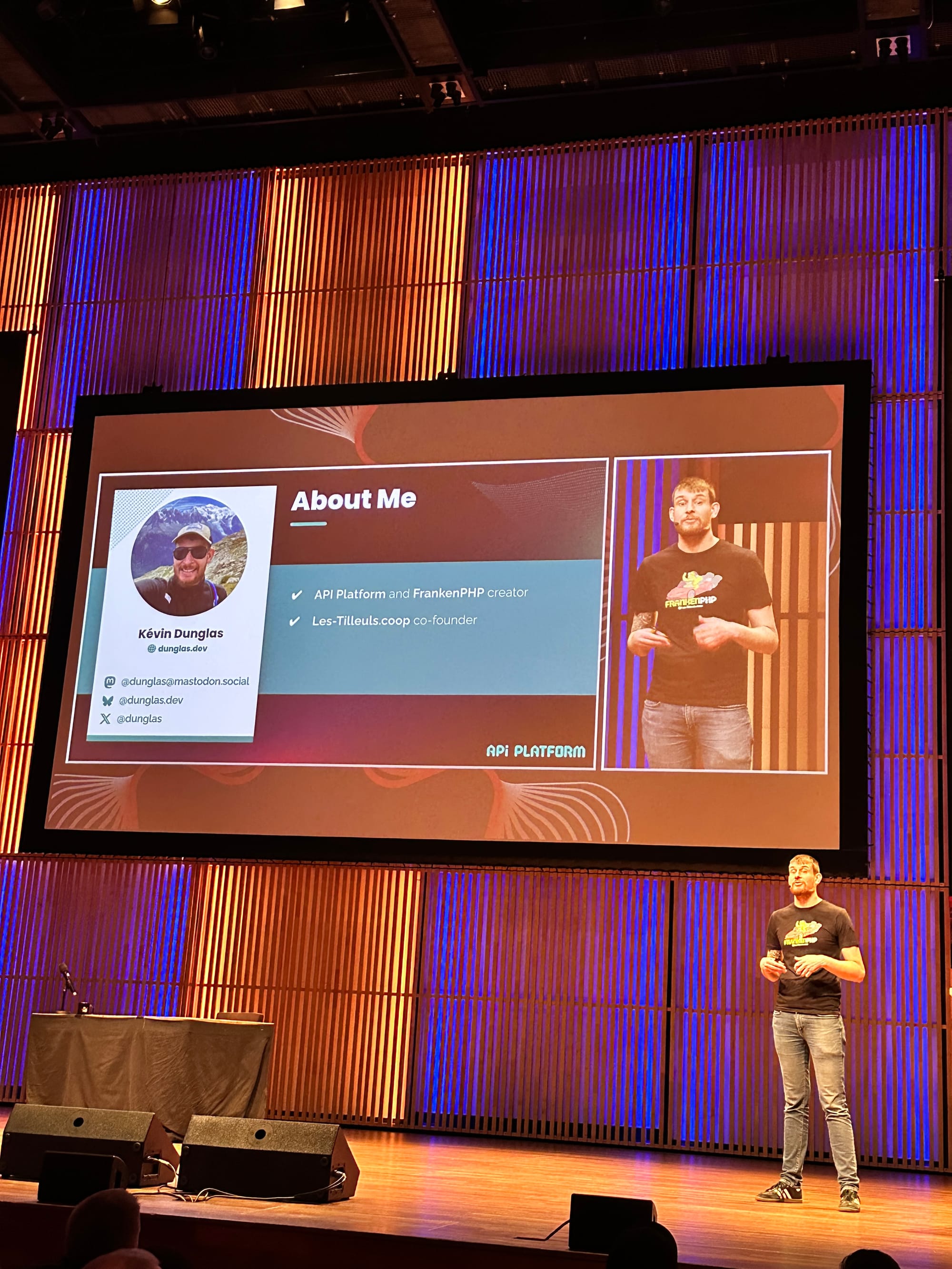 Kévin introduced API Platform, a framework for building scalable APIs, explaining schema generation, serialization, and automatic API documentation.